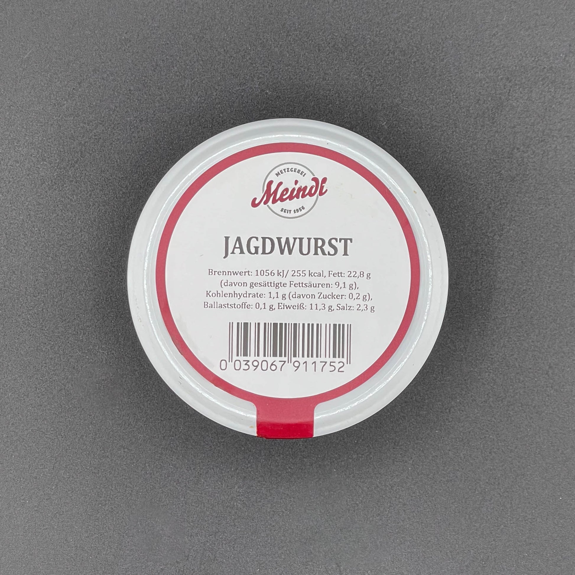 Unsere Jagdwurst aus hochwertigem Schweinefleisch und feinen Gewürzen bietet einen unverwechselbaren Geschmack. Perfekt als Belag für Brote oder als Zutat in deftigen Gerichten. Vielseitig einsetzbar und stets ein Genuss. Entdecken Sie Qualität und Geschmack!